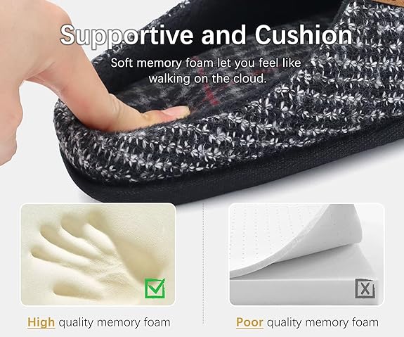 - Comfort: The high-density memory foam provides cushioning and support, making these slippers incredibly comfortable to wear for long periods.