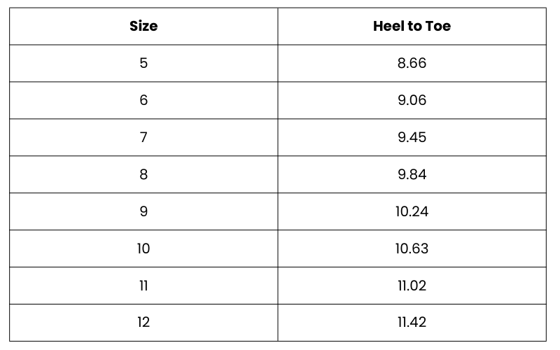 Size Chart (inches):